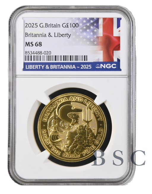 2025 Great Britain £100 Britannia & Liberty 1oz Gold Coin NGC MS68