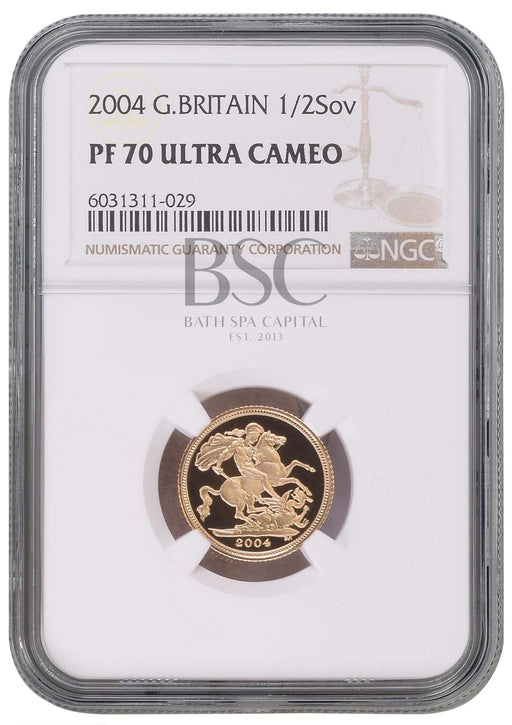 Elizabeth II, 2004 Gold Proof Half Sovereign NGC PF70 Ultra Cameo