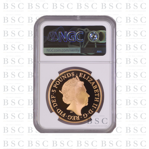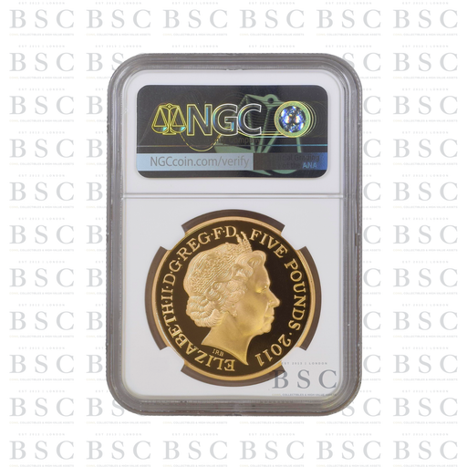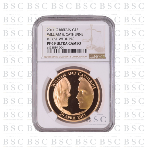 2011 GB £5 Quintuple Sovereign William & Catherine Royal Wedding Gold Proof Coin. Graded PF69 Ultra Cameo by NGC. NGC Certification Number: 61...
