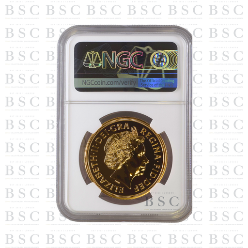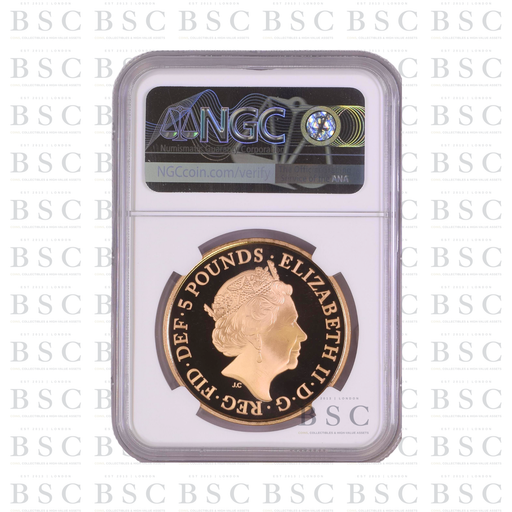 2019 GB £5 Quintuple Sovereign St George Gold Proof Coin. Graded PF70 Ultra Cameo by NGC. NGC Certification Number: 5880473-009 Exact coin pictur...