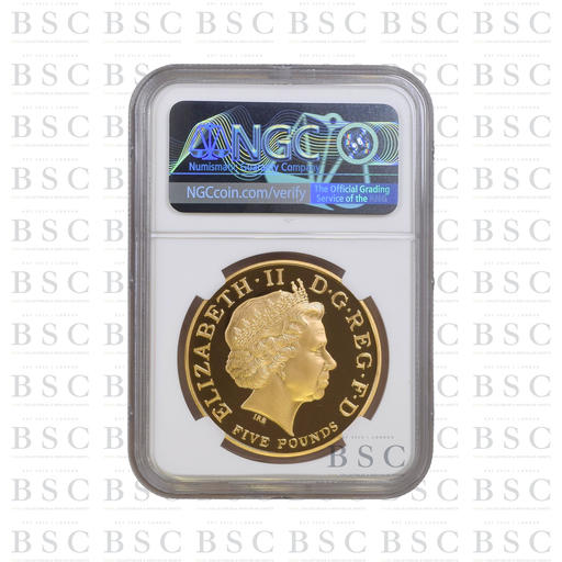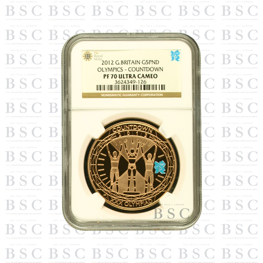 2012 £5 Quintuple Sovereign Olympics Countdown Proof Gold Coin. Graded PF70 Ultra Cameo by NGC. NGC Certification Number: 3624349-126 Exact coin ...
