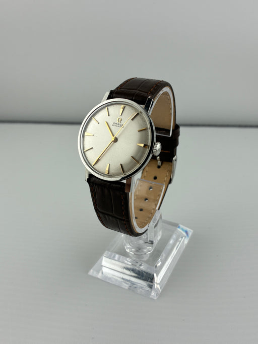 BSC CollectiblesLow stockHere we have a 1965 Omega. This particular watch has an all original silver dial and solid 9ct gold case. The movement is a manual wind mechanical ...