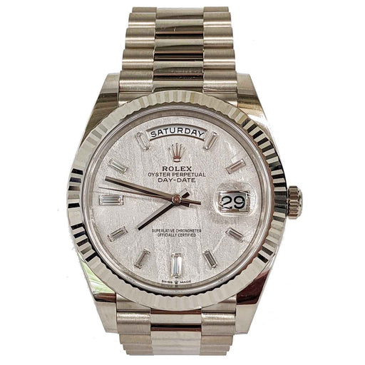 Rolex Daydate 40 White Gold Meteorite Baguette Diamond Dial 228239 - 2023 Box and Papers