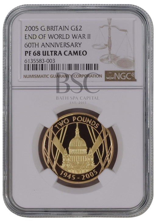 Elizabeth II, 2005 Gold Proof "End of World War II" Two Pounds NGC PF68 Ultra Cameo