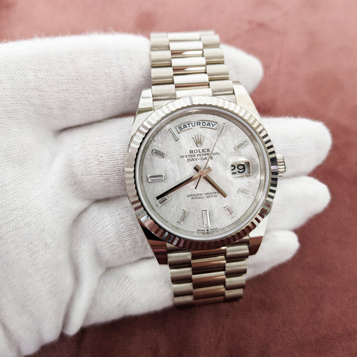 Rolex Daydate 40 White Gold Meteorite Baguette Diamond Dial 228239 - 2023 Box and Papers